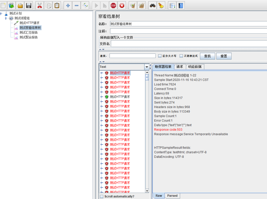 测试线程组 > 添加 > 监听器 > 查看结果树、汇总报告、聚合报告