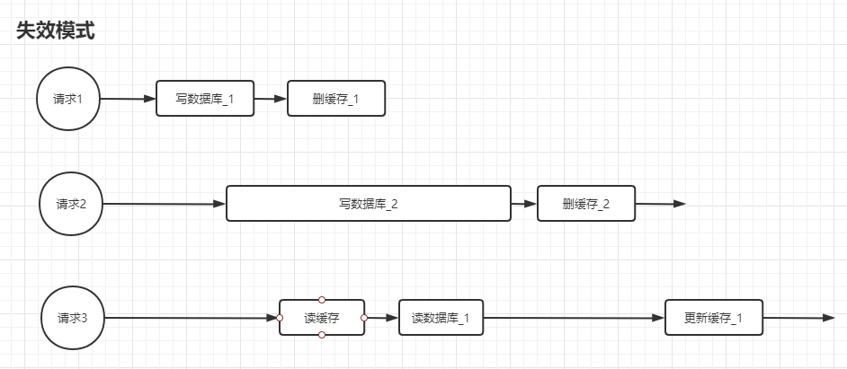 等请求2写完数据库又删除了缓存后,请求3将缓存更新为了数据库1的内容,最后导致数据库是2的内容,缓存是1的内容