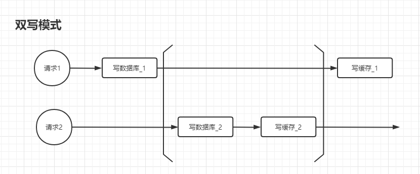 问题:产生脏数据,如下图,请求1比请求2执行的慢,最后会出现数据库是2缓存是1的状况