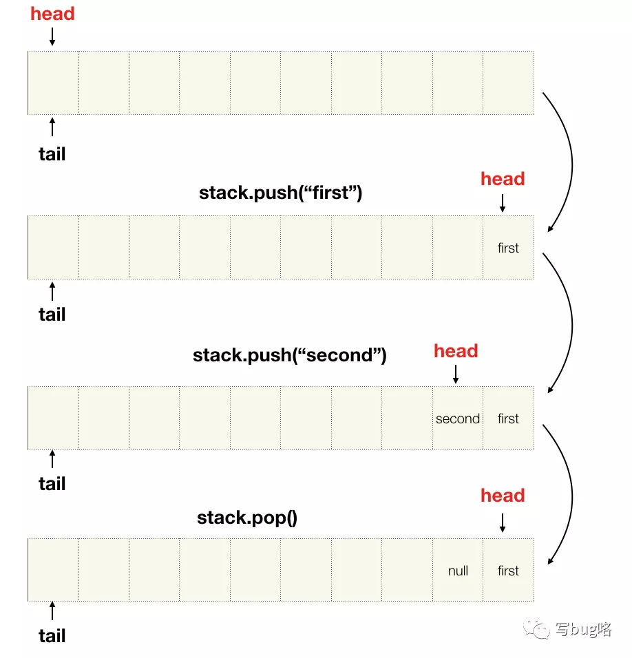 push和pop 3.1小节说了其本质是调用addFirst和removeFirst,先看操作图解: