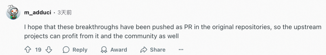 除了称赞,更多的网友还是希望能将这些性能优化的突破开源出来,反哺给上游,以便让更多开发者受益。