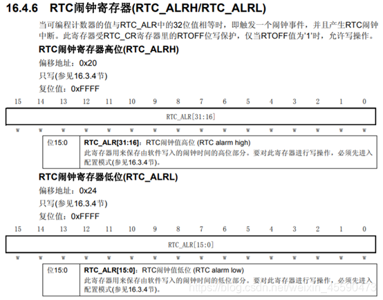 RTC_PRL、RTC_ALR、RTC_CNT和RTC_DIV寄存器仅能通过备份域复位信号复位。
