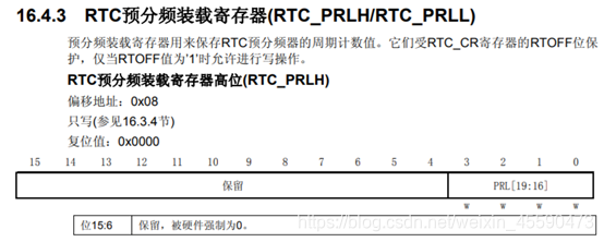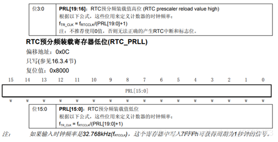 必须设置RTC_CRL寄存器中的CNF位,使RTC进入配置模式后,才能写入RTC_PRL、RTC_CNT、RTC_ALR寄存器。