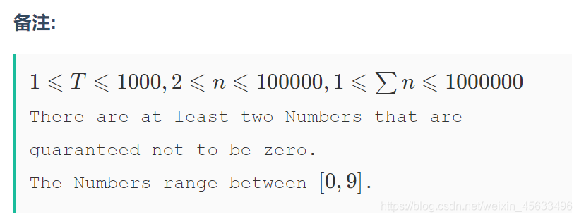 Concise meaning:Given n numbers between 0 and 9, use them to make two positive integers without leading zeros to minimize the product.