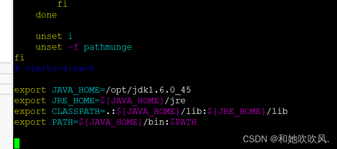 export JAVA_HOME=/opt/jdk1.6.0_45 //注意:这是刚刚解压出来的jdk路径