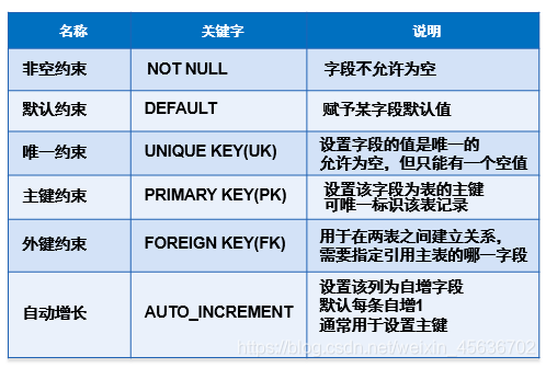 (1)字段的约束及属性