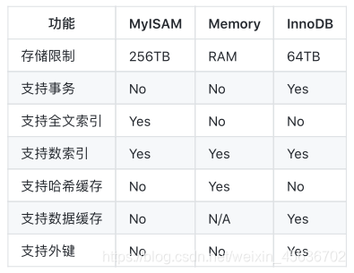 3、存储引擎的主要区别