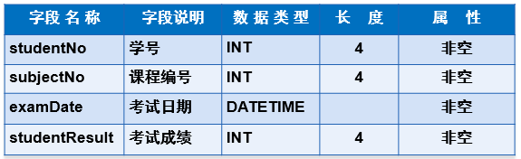 (2)myschool数据库中创建成绩表(result)