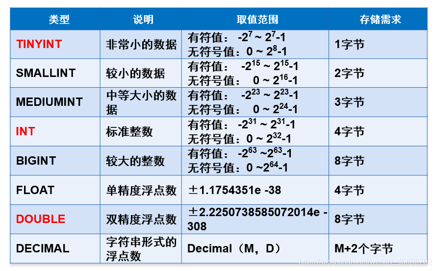 二、MySQL常用数据类型