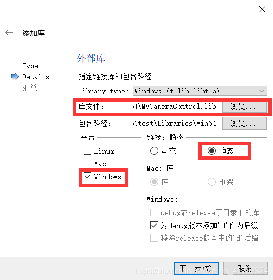 复制完成后在QT中右击项目文件,点击添加库,选择外部库,点击下一步,选择库文件,选择平台和静态链接,点下一步就行了.
