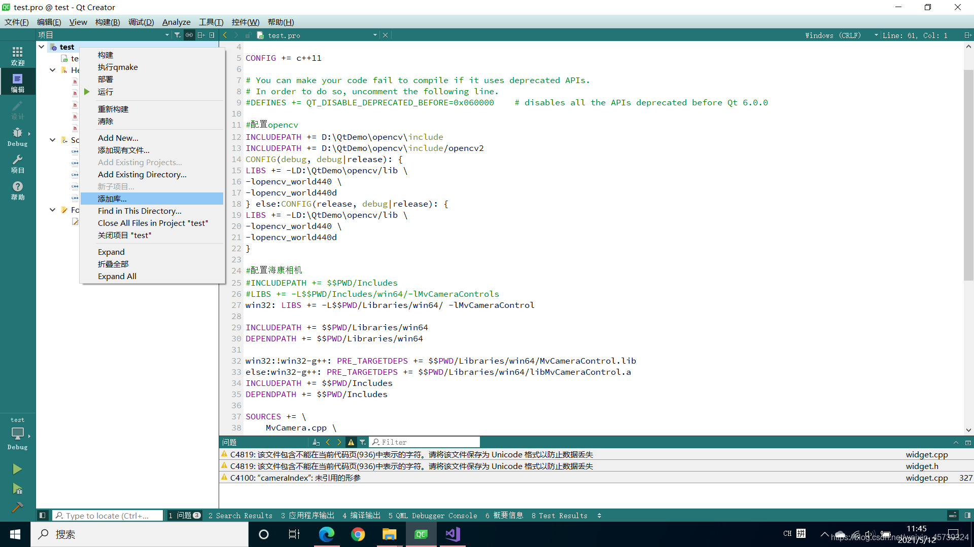 2.1.首先我们需要在qt中配置好实现功能的环境:
