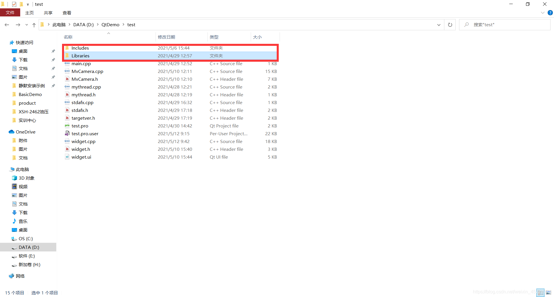 先在QT中创建一个项目,将海康的MVS文件下Development文件里面的Includes以及Libraries文件复制到qt的项目文件下.