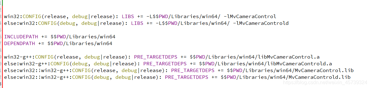 INCLUDEPATH += D:\QtDemo\opencv\includeINCLUDEPATH += D:\QtDemo\opencv\include/opencv2CONFIG(debug, debug|release): {LIBS += -LD:\QtDemo\opencv/lib \-lopencv_world440 \-lopencv_world440d} else:CONFIG(release, debug|release): {LIBS += -LD:\QtDemo\opencv/lib \-lopencv_world440 \-lopencv_world440d}