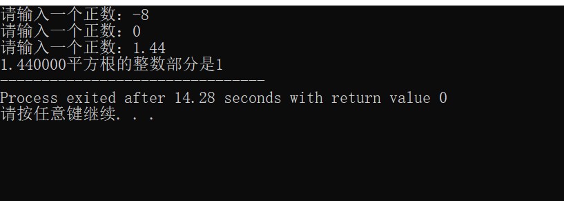 要求:从键盘输入一个正数,倘若不是正数需要重新输入,求该正数平方根的整数部分。