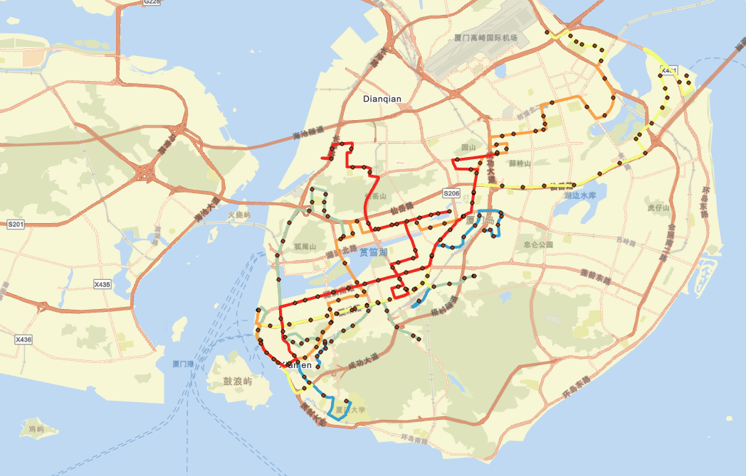 本篇文章,我们依然以厦门的公交线路为例,挑选厦门的几条公交线路作为研究对象;