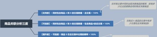 问: 除了公式的含义,关联三度(支持度,置信度,提升度)还有什么关联吗?