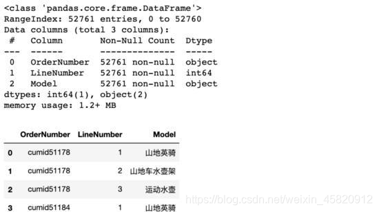 - itemvar :将什么东西放进篮子里,本案例是将数据集中的商品,就是 Model 列放入篮子 -- object类型