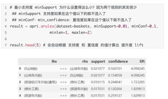 这里,minSupport 或 minConf 设定越低,产生的规则越多,计算量也就越大