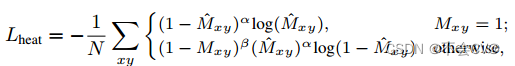 负责估计物体中心的位置,维度为1 × H × w,若图中某个位置的响应与GT对象中心坍塌,则预计为1;响应随着热图位置和物体中心之间的距离呈指数衰减。Heatmap的损失函数使用Focal Loss。该模块的损失函数设计如下: