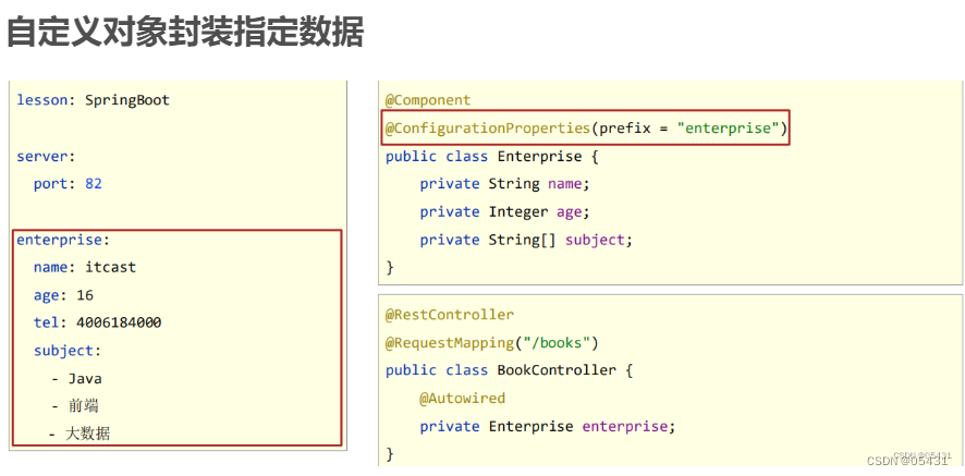 - 使用@ConfigurationProperties注解绑定配置信息到封装类中