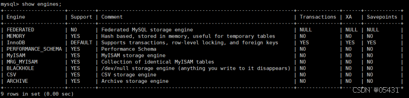 MySQL 8.0.25默认支持的存储引擎如下: