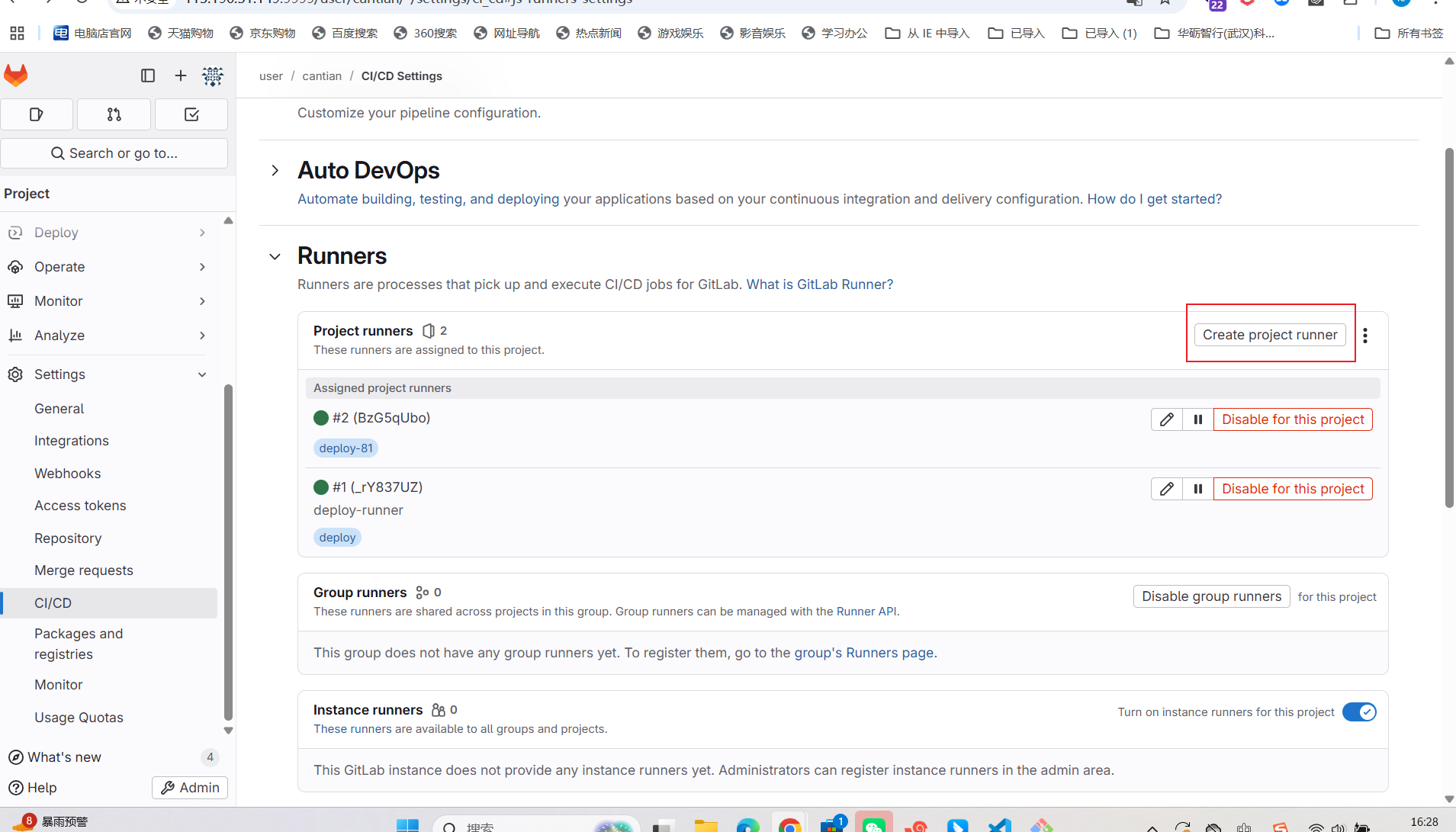 这里的 listen 80;一定要是80所有的地方都是80只要.gitlab-ci.yml里面是docker run -d --name cantian -p 81:80 cantian:latest//映射81并启动这个镜像就自己回映射到81