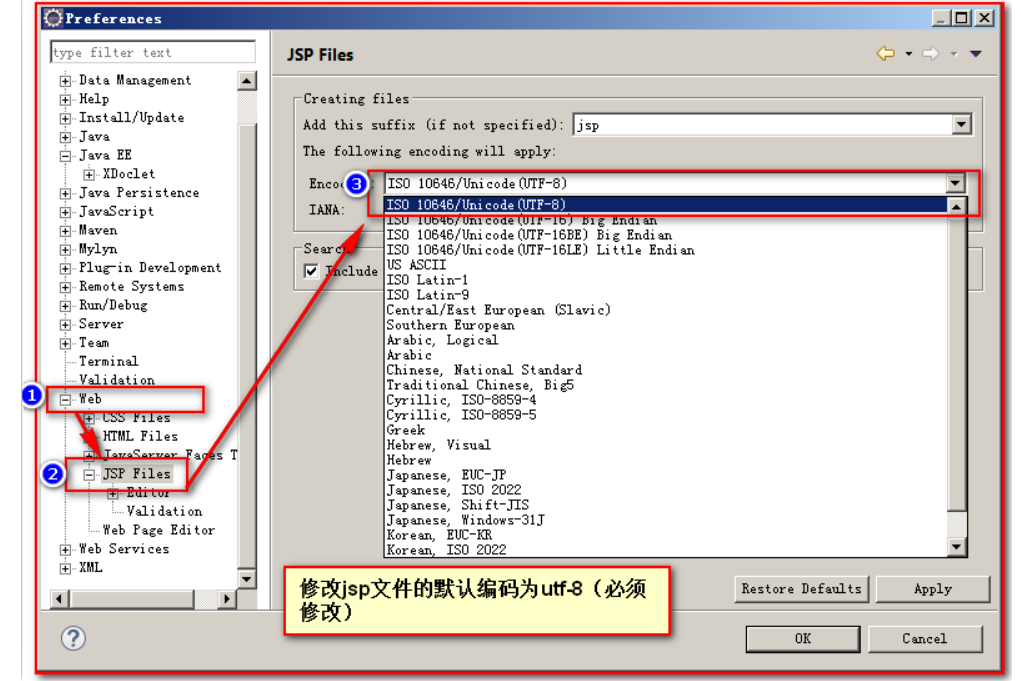 2、jsp的默认编码集是iso-8859-1,修改jsp的默认编码为UTF-8