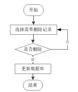 用户选择要删除的信息并单击Delete按钮。系统提示是否删除信息。如果用户想要删除信息,系统将删除信息。系统数据库删除信息。删除信息流程图如图3-5所示。
