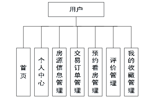用户注册登录后可进行首页、个人中心、房源信息管理、交易订单管理、预约看房管理、评价管理、我的收藏管理,用户用例如图3-2所示。