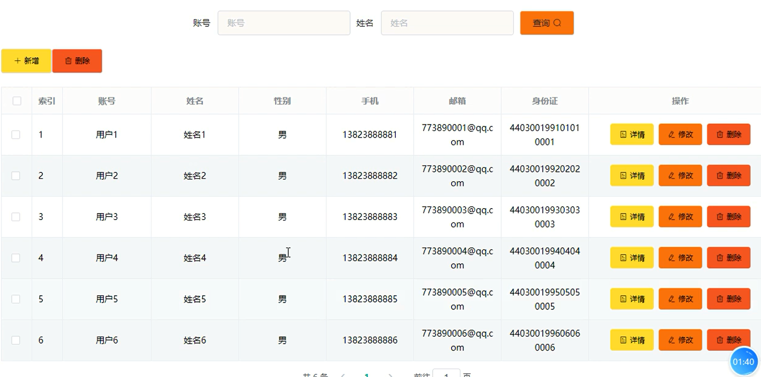 管理员可查看、修改和删除用户信息,并可新增用户,用户管理界面展示如图5-10所示 。