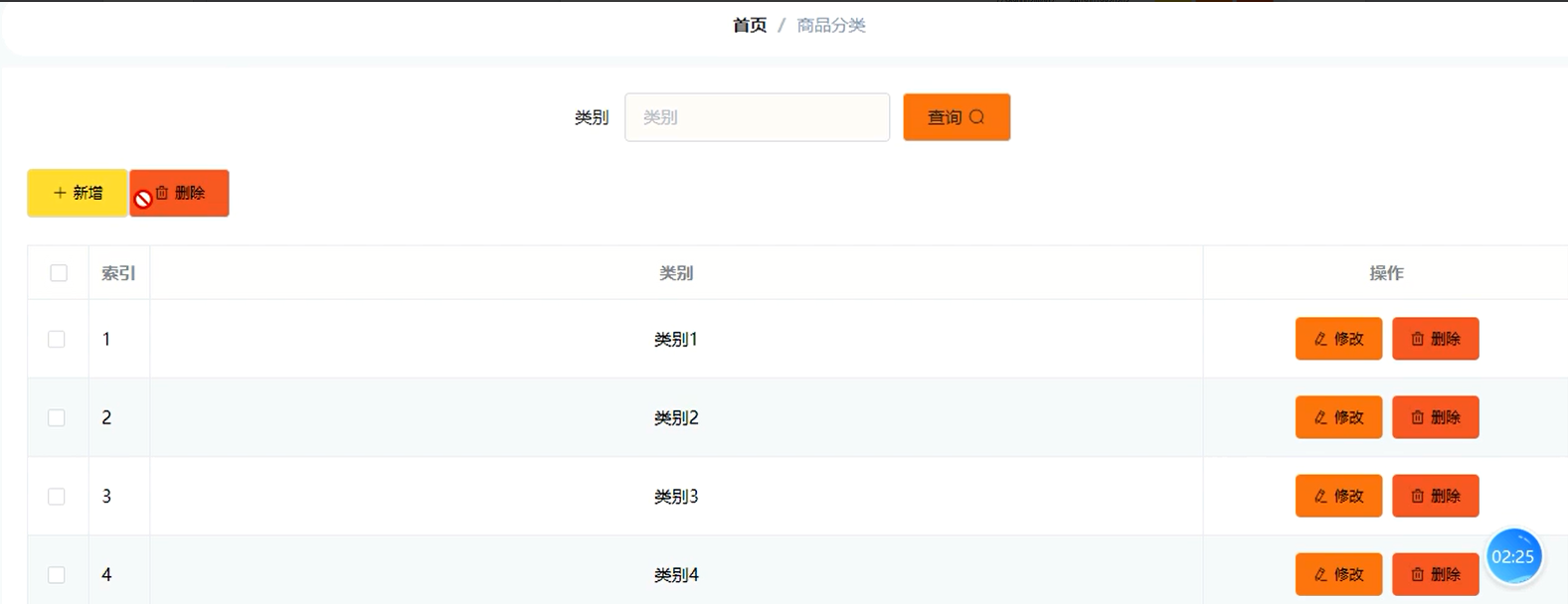 管理员可增删改查商品分类信息,商品分类界面展示如图5-11所示 。