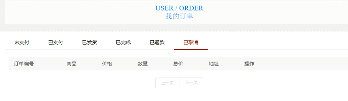 用户在我的订单界面可查看个人订单信息,我的订单界面如图5-6所示。