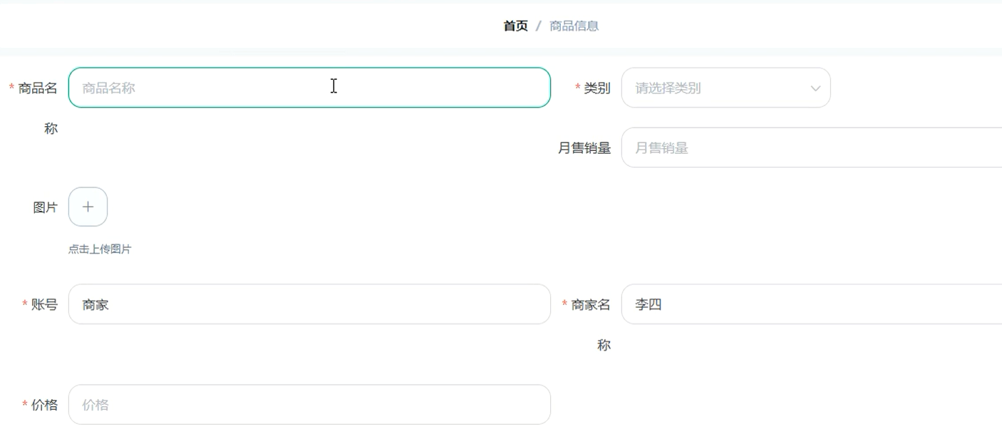 商家可进入到添加商品信息界面进行添加信息,添加商品信息界面展示如图5-13所示 。