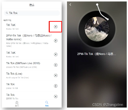 和热搜关键字容器 – 互斥显示 : v-if/v-else点击文字填充到输入框, 请求搜索结果铺设<!-- 搜索下容器 --> <div class="search_wrap" v-if="resultList.length === 0"> <!-- 标题 --> <p class="hot_title">热门搜索</p> <!-- 热搜关键词容器 --> <div class="hot_name_wrap"> <!-- 每个搜索关键词 --> <span class="hot_item" v-for="(obj, index) in hotArr" :key="index" @click="fn(obj.first)" >{{ obj.first }}</span > </div> </div> <!-- 搜索结果 --> <div class="search_wrap" v-else> <!-- 标题 --> <p class="hot_title">最佳匹配</p> <van-cell center :title="obj.name" v-for="obj in resultList" :key="obj.id" :label="obj.ar[0].name + ' - '+ obj.name" > <template #right-icon> <van-icon name="play-circle-o" size= "0.6rem"/> </template> </van-cell> </div>import { hotSearchAPI, searchResultListAPI } from "@/api"; export default { data() { return { value: "", // 搜索关键词 hotArr: [], // 热搜关键字 resultList: [], // 搜索结果 }; }, async created() { const res = await hotSearchAPI(); console.log(res); this.hotArr = res.data.result.hots; }, methods: { async getListFn() { return await searchResultListAPI({ keywords: this.value, limit: 20, }); // 把搜索结果return出去 // (难点): // async修饰的函数 -> 默认返回一个全新Promise对象 // 这个Promise对象的结果就是async函数内return的值 // 拿到getListFn的返回值用await提取结果 }, async fn(val) { // 点击热搜关键词 this.value = val; // 选中的关键词显示到搜索框 const res = await this.getListFn(); console.log(res); this.resultList = res.data.result.songs; } }