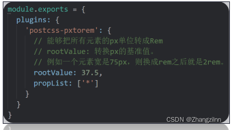 postcss-pxtorem – 配合webpack, 自动把px转成rem2.新建postcss.config.js – 设置相关配置![]()
