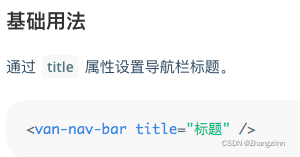 <van-nav-bar :title="activeTitle" fixed />export default { data() { return { activeTitle: this.$route.meta.title, // "默认"顶部导航要显示的标题 (默认获取当前路由对象里的meta中title值) }; }, };3.侦听路由切换显示对应标题