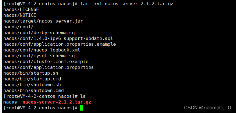 输入tar -xvf nacos-server-2.1.2.tar.gz解压
