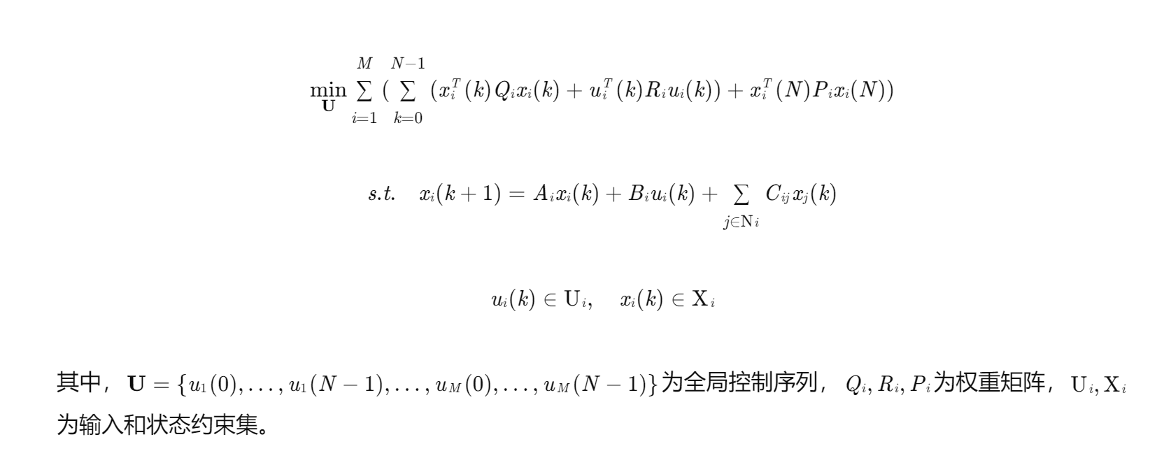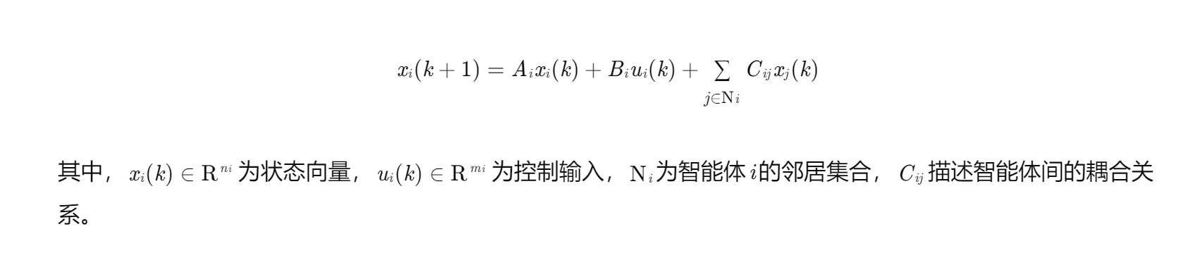 考虑由M个智能体组成的分布式系统,每个智能体i的动态模型为: