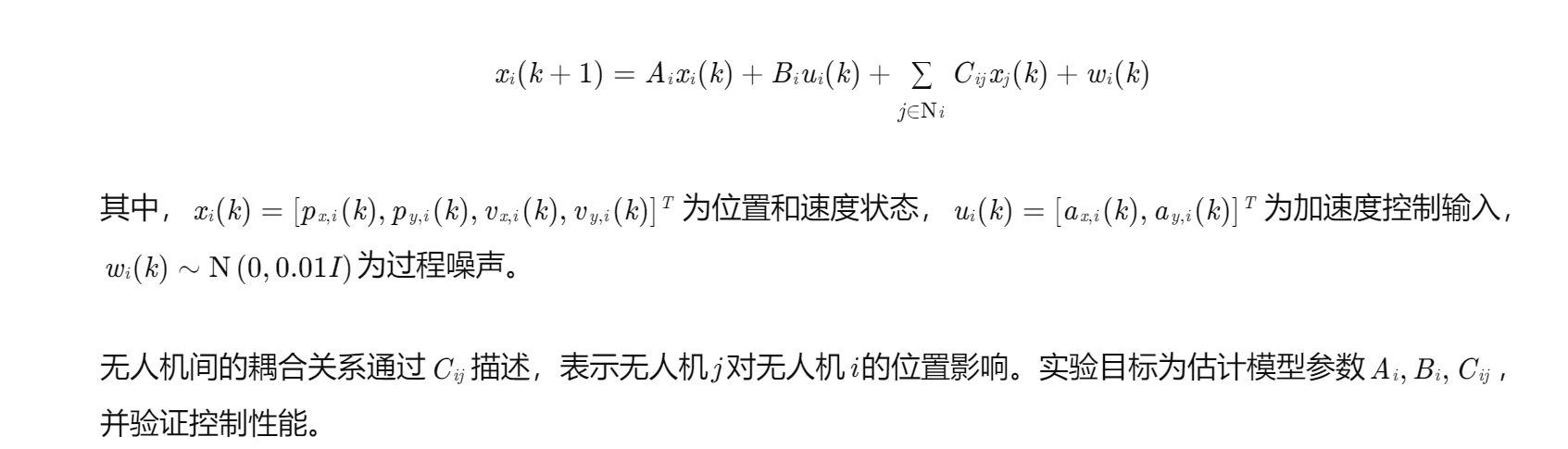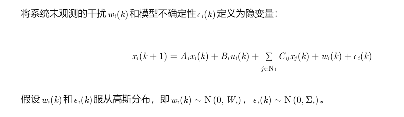 DMPC的性能依赖于模型参数θ={Ai,Bi,Cij,Qi,Ri,Pi}的准确性。参数估计问题可表述为:给定状态和控制输入的观测数据\mathcal{D} = \{x_i(k), u_i(k)\}_{k=0}^{T-1, i=1}^M,估计参数θ使得对数似然函数L(θ;D)最大化。