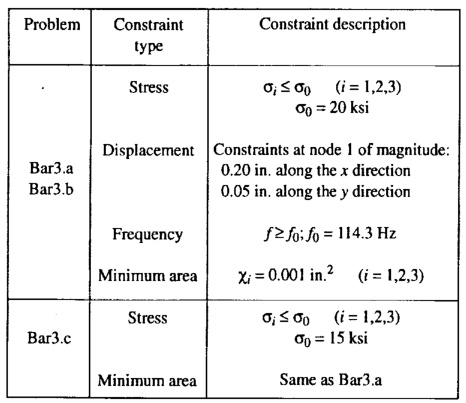 - 状态变量:杆件应力 σi≤400 psi,目标函数:最小化质量。
