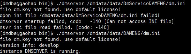 ./dmserver /dmdata/data/DMTEST/dm.ini