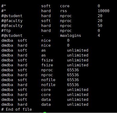 dmdba hard nofile 65536