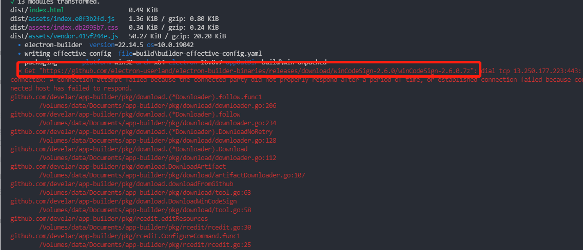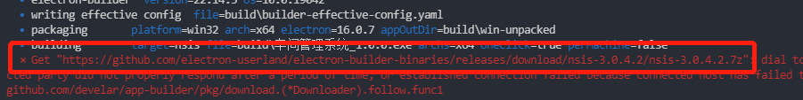 这个问题是相关依赖包是在GitHub上面,由于网络原因,不能够正常下载访问,所以影响打包操作。