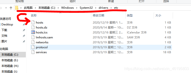 接下来 修改计算机 C盘 ——C:\Windows\System32\drivers\etc 下的文件hosts(原因是服务器响应先找本地hosts中有没有对应的URL)