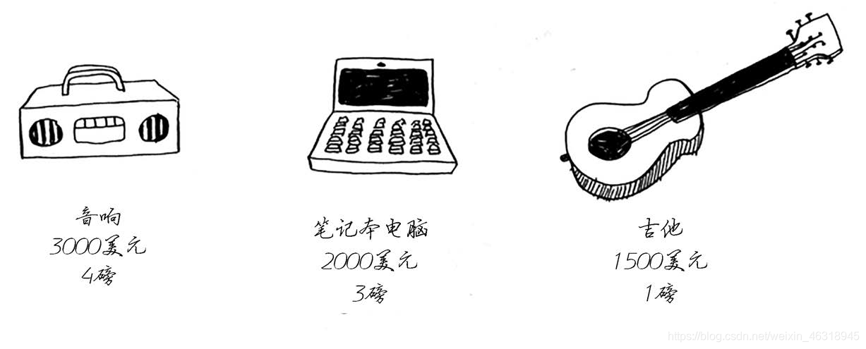 假设你是个小偷,背着一个可装4磅重东西的背包。你可以盗窃的商品有如下三件。为了让盗窃的撒谎给你品价值最高,你该选择哪些商品?