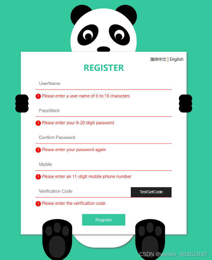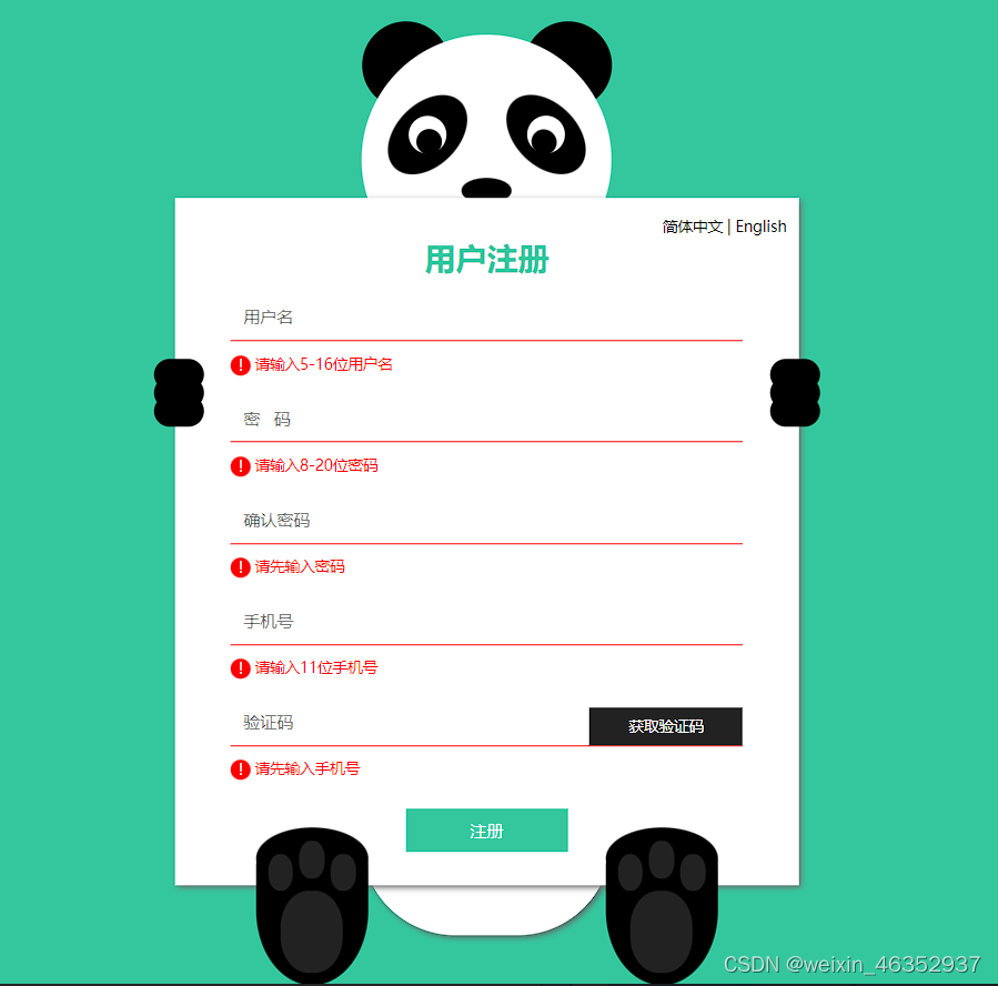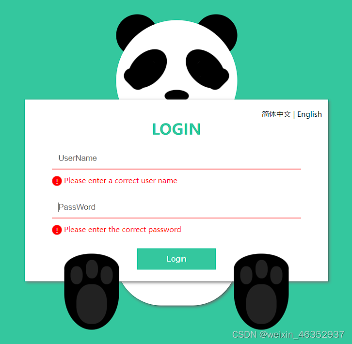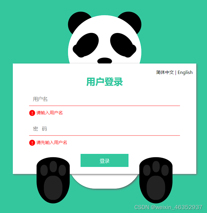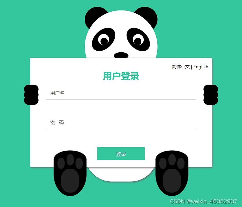 1,熊猫登录界面,通过大量原生CSS和原生JS代码,完成并实现了简单的用户交互,通过获取本地存储空间的用户名,来实现简单的登录效果,