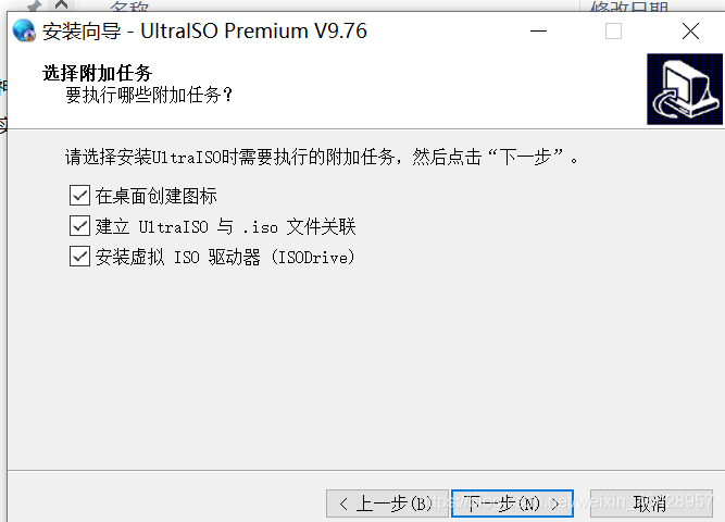 注:安装UltraSO 时,一定要选择和.iso文件建立联系,最好三个都选择了