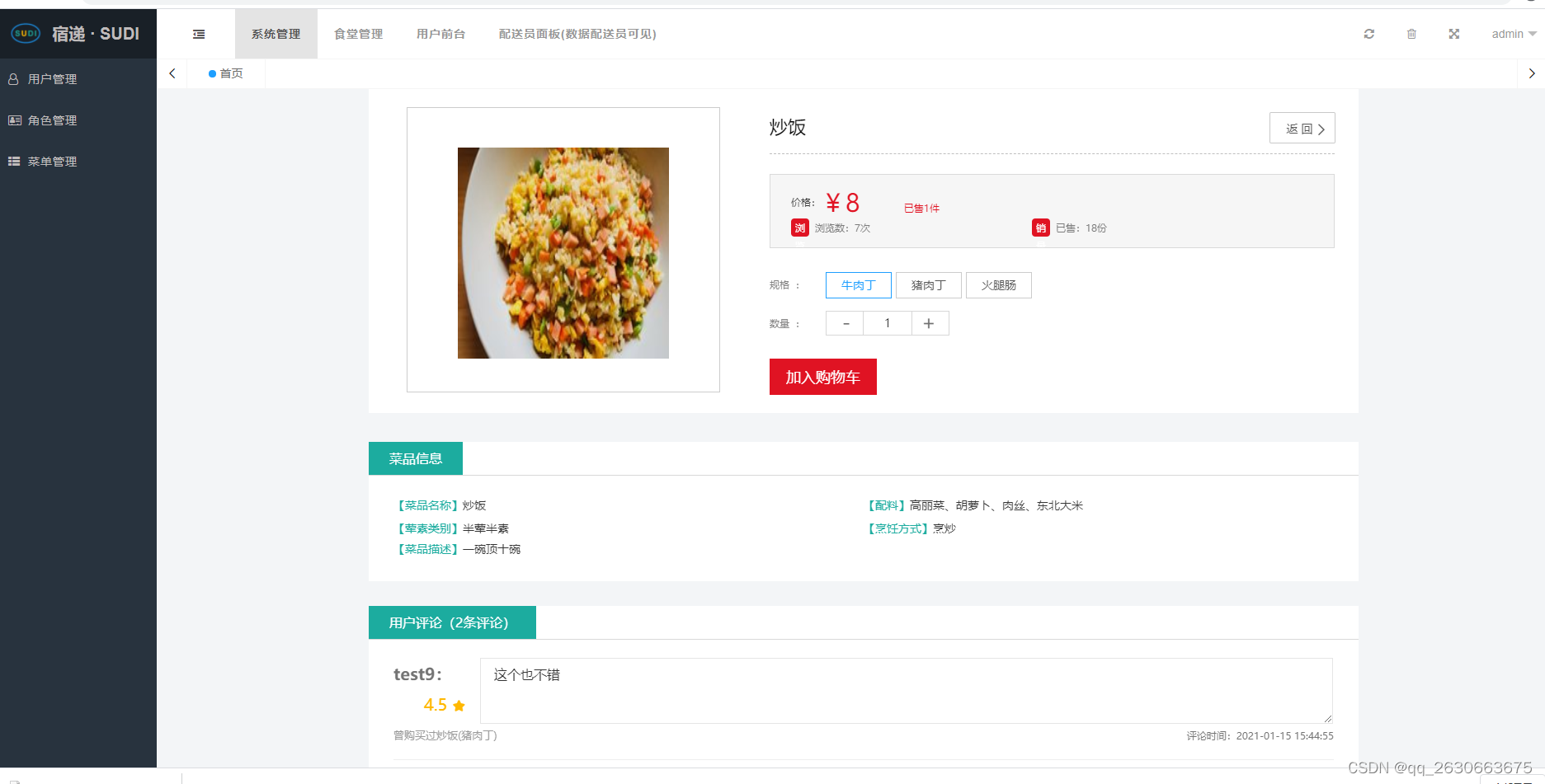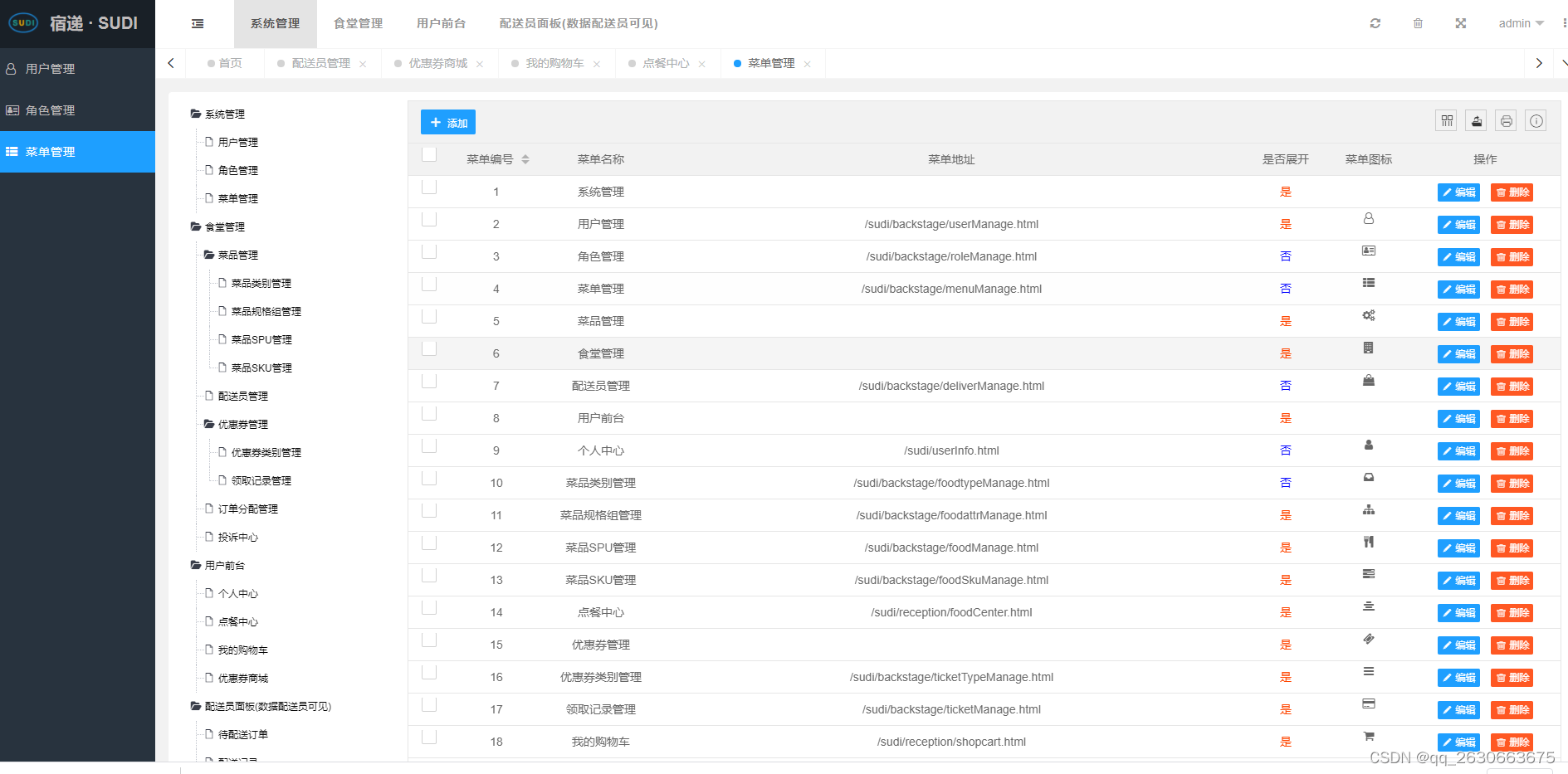 本文介绍了一个食堂管理系统的设计与实现,涵盖了用户、菜品、订单、配送员等多个模块。系统包括用户管理、菜品类别管理、菜品规格管理、订单管理等功能,支持角色权限划分,实现了完整的业务流程。同时,数据库设计细致,包含了地址、评论、投诉等细节,为食堂运营提供了全面的数据支持。