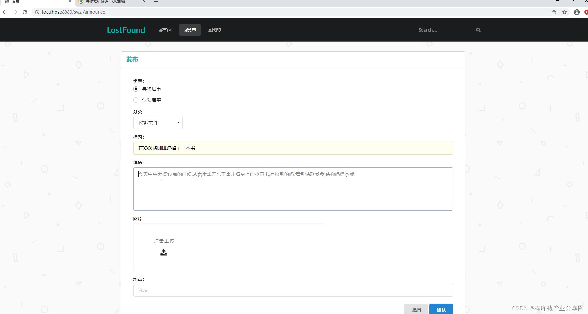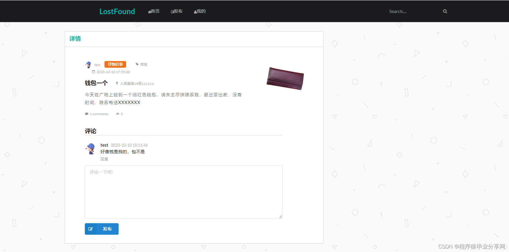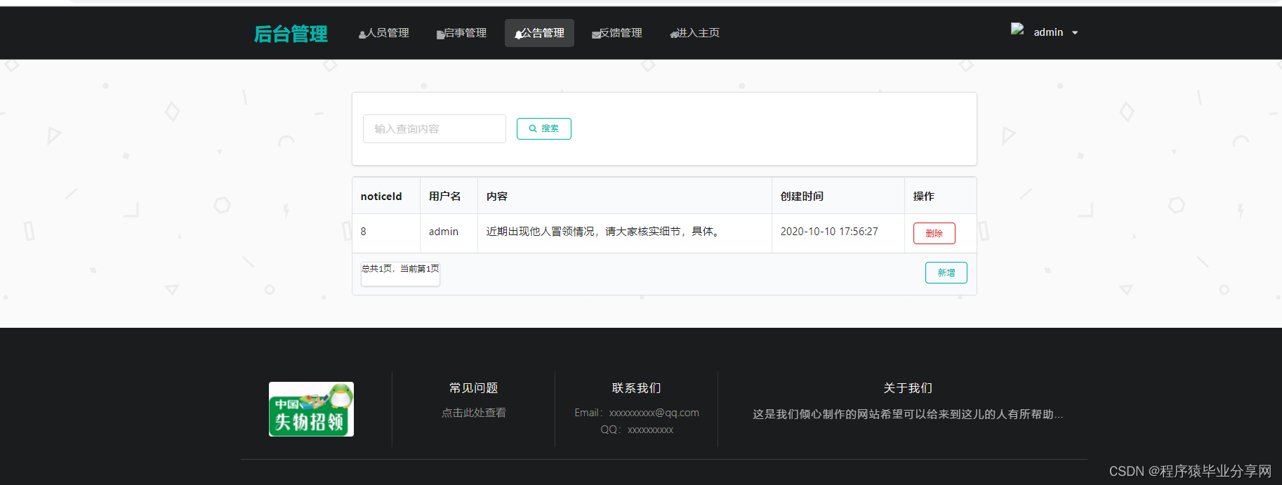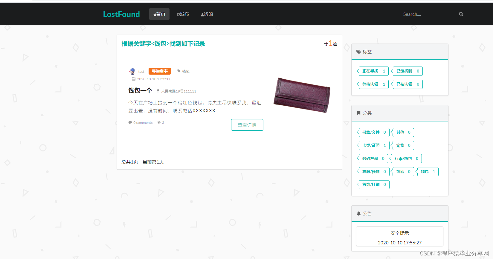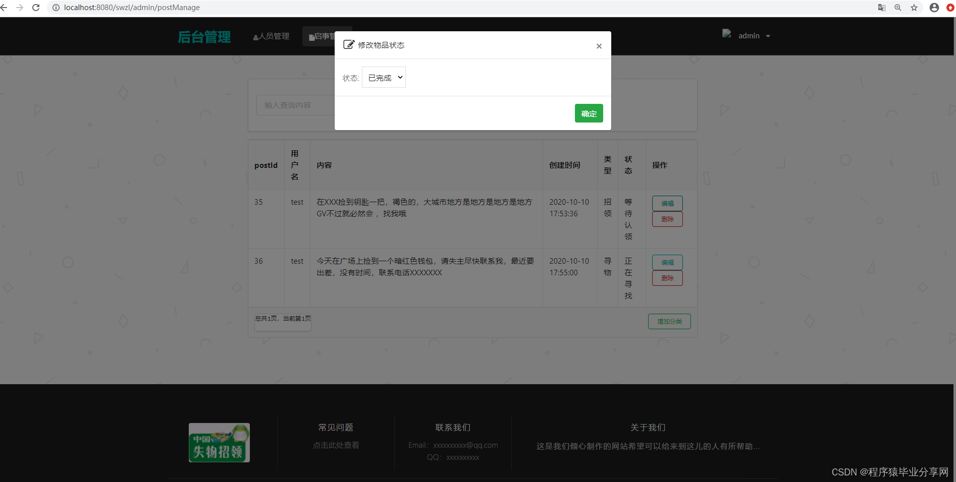 一个基于SpringBoot+SemanticUI的pc Web在线失物招领系统