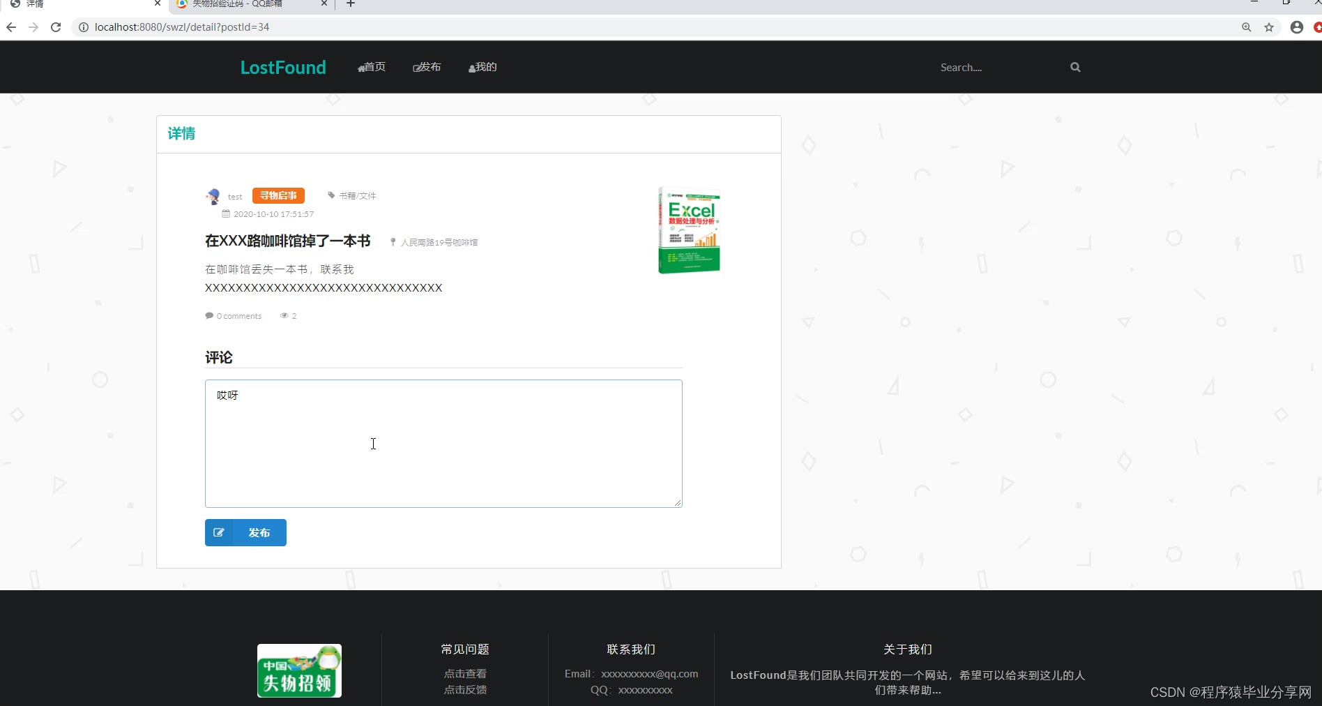 jmail.setTopic("失物招领回复");